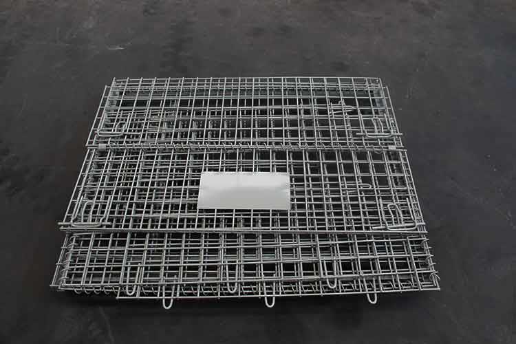 可折疊美固籠的主要原材料是高線拉成的鋼絲,一般絲徑是5mm,6mm,6.4mm。網(wǎng)片焊接的網(wǎng)目間距一般為50×100,100×100,50×50。倉儲籠底部采用U型鋼焊接而成,U型鋼是冷軋帶鋼軋機軋制而成,底部四角采用沖壓件一次沖制而成。倉儲籠采用Q195高線作為原材料,經(jīng)冷拔成型材。再通過碰焊形成半成品網(wǎng)片。在制作成網(wǎng)片后,可采用鍍鋅或噴塑進行表面處理(倉儲籠大多數(shù)采用鍍鋅處理),表面處理完畢后就可以進行組裝,即可制作成成品。