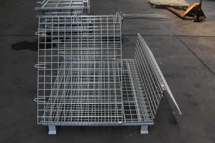 金屬倉(cāng)庫(kù)籠采用螺旋型鉸鏈結(jié)構(gòu)使得倉(cāng)庫(kù)籠在不用時(shí)能折疊,以減少占用空間;特殊腳部結(jié)構(gòu),可使金屬倉(cāng)庫(kù)籠自身堆高穩(wěn)定。同時(shí)可與各種搬運(yùn)設(shè)備進(jìn)行搬運(yùn),自身可堆垛四層,實(shí)現(xiàn)立體化存儲(chǔ);空籠存放時(shí)折疊存放,節(jié)省空間。且表面鍍鋅處理,抗工廠(chǎng)和室外環(huán)境的腐蝕,因此使用壽命長(zhǎng)。
