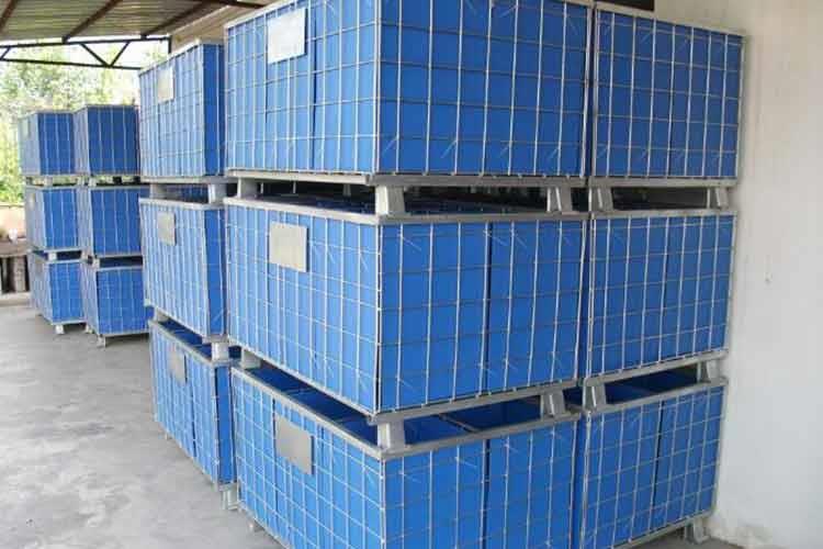 3、空箱堆疊:空箱存放或運(yùn)輸回收時(shí),折疊后再互相堆疊,節(jié)省物流本錢,腳柱設(shè)計(jì),避免互相壓壞變形。
